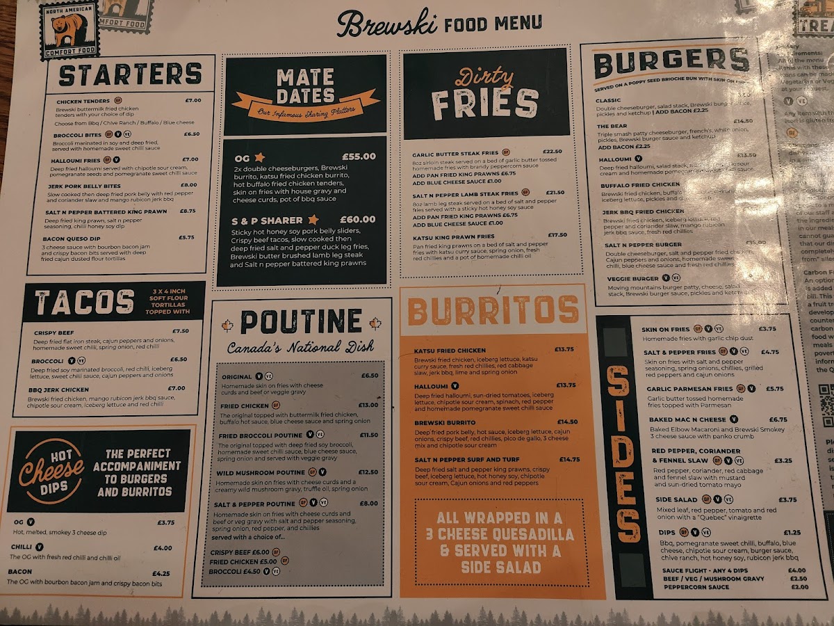 Overall, Brewski Bar’s menu impresses with its variety, quality, and creativity. The combination of great food, an excellent selection of drinks, and a welcoming atmosphere makes this a top choice for those looking to enjoy a memorable night out in Chorlton-cum-Hardy.